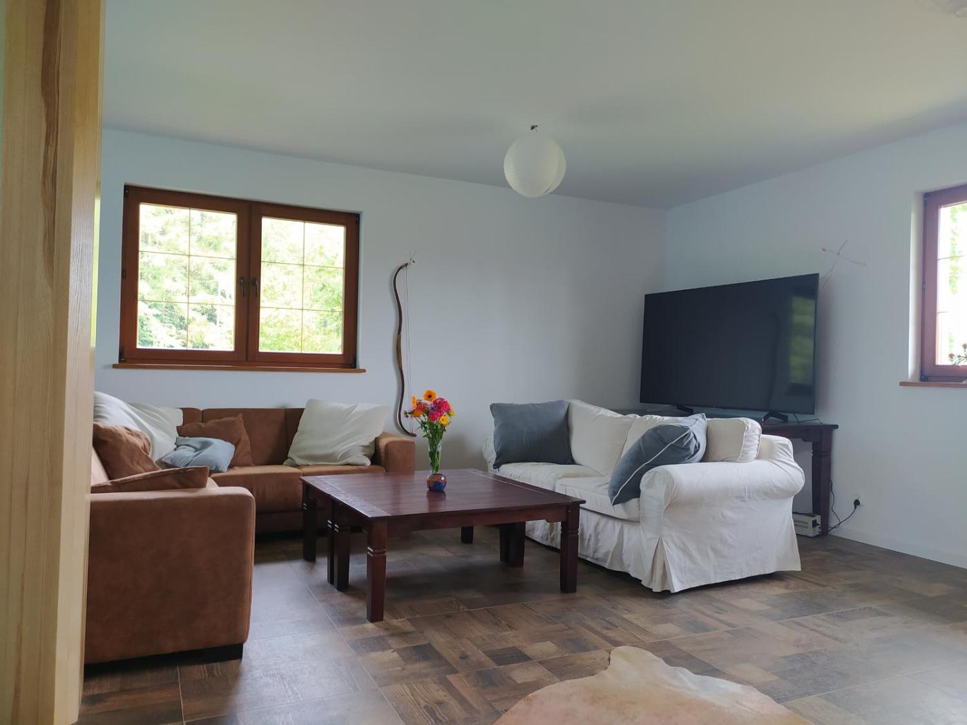 Apartament z 2 sypialniami. Boasting a private entrance, this apartment also includes 1 living room, 2 separate bedrooms and 1 bathroom with a shower. Featuring a terrace with garden views, this apartment also offers a coffee machine and a flat-screen TV with streaming services. The unit has 4 beds. Apartament - 5 osobowy. Powierzchnia pokoju ok.: 35 mkw. ;