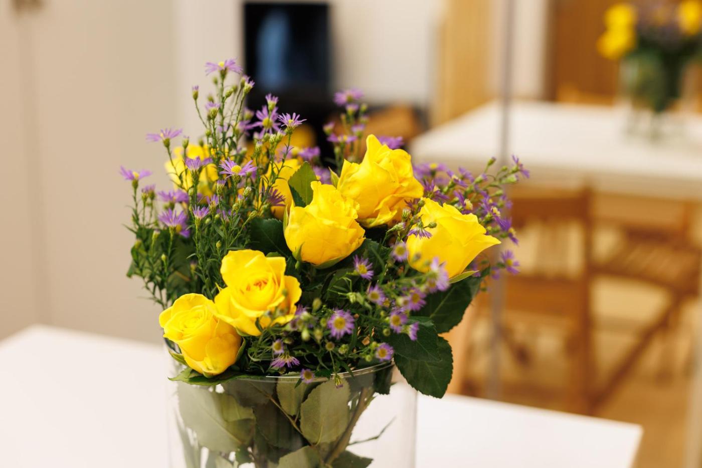 Oferta apartamentu obejmuje sypialnię (1), salon, aneks kuchenny z pełnym wyposażeniem, w tym lodówką i ekspresem do kawy, a także łazienkę (1) z prysznicem oraz suszarką do włosów. W apartamencie zapewniono ręczniki i pościel.
