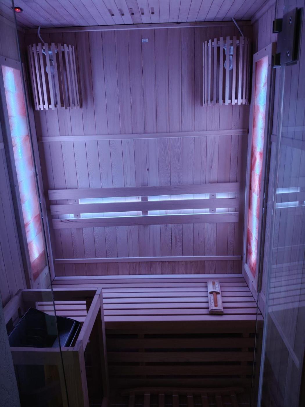 Zaplecze odnowy biologicznej obiektu Apartament Bieszczady Darmowa Sauna Jacuzzi 100 metrów od wyciągu narciarskiego!!! obejmuje saunę i wannę z hydromasażem.