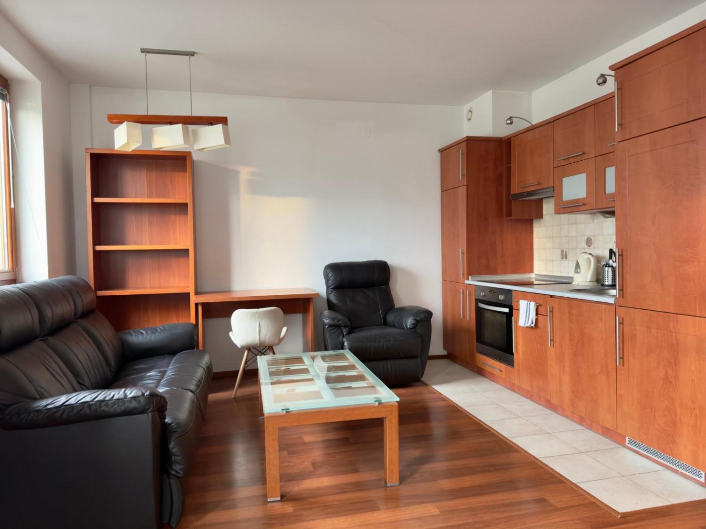 W apartamencie zapewniono sypialnię (1), salon oraz kuchnię z pełnym wyposażeniem, w tym piekarnikiem i płytą kuchenną.